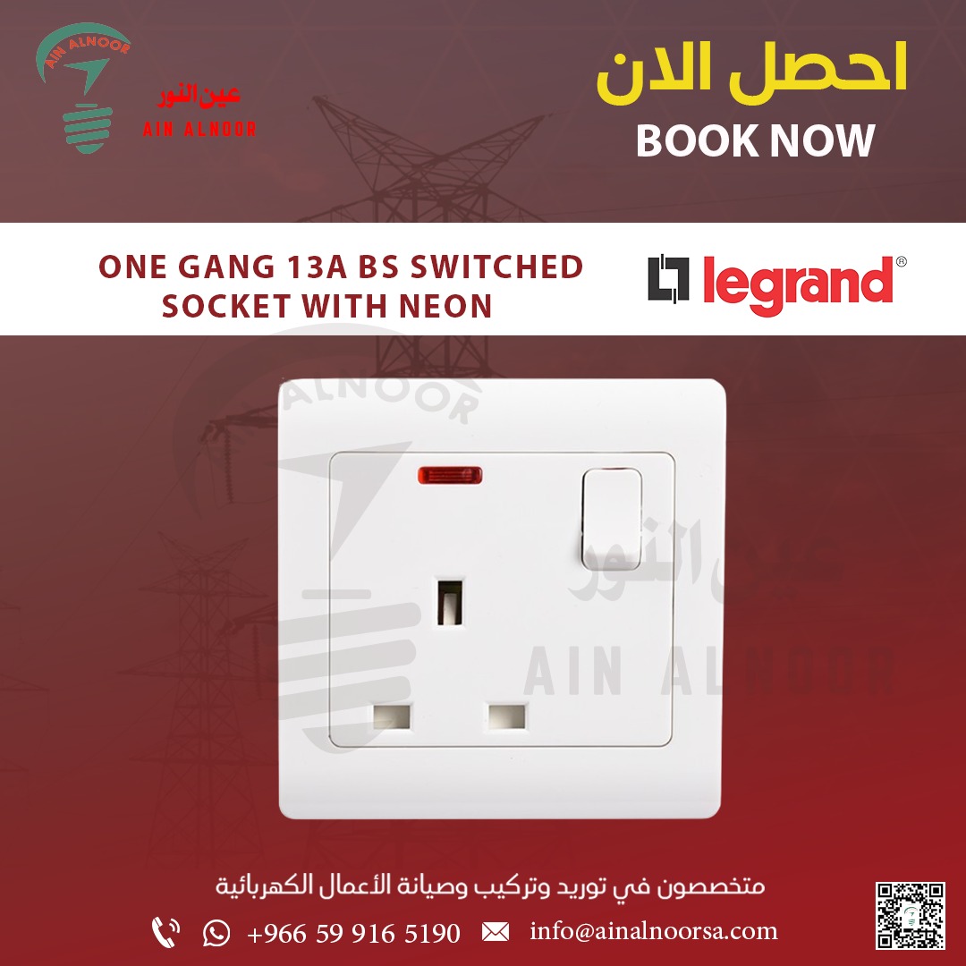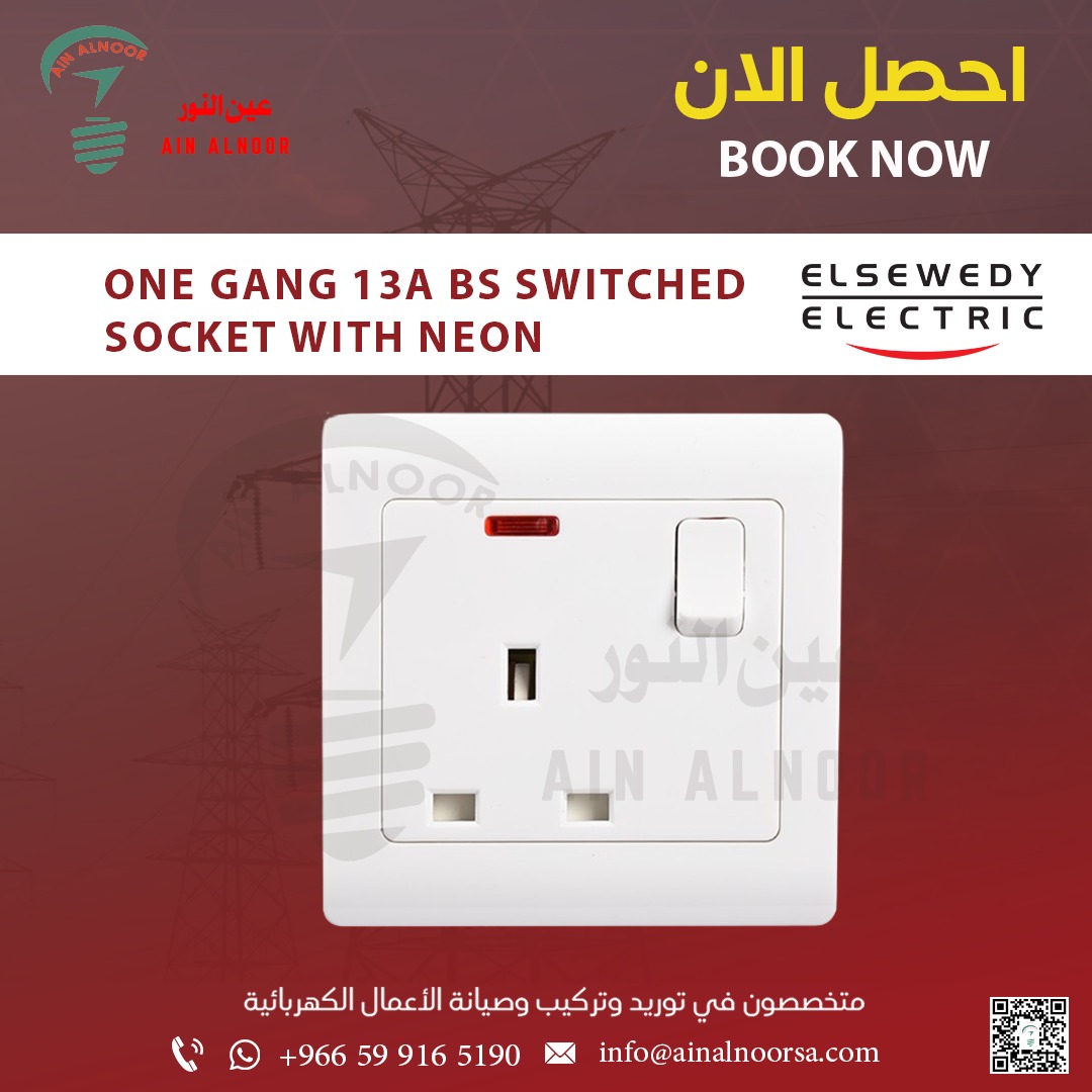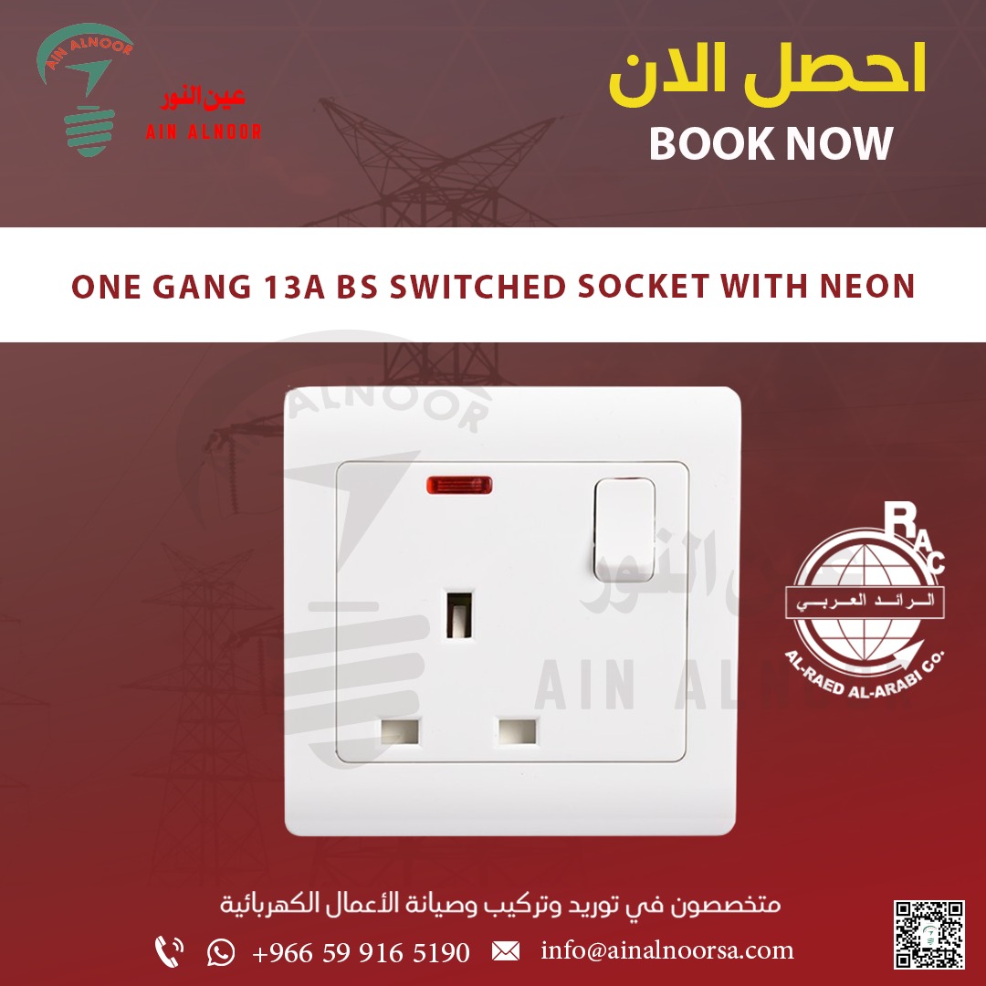 ONE GANG 13A BS SWITCHED SOCKET WITH NEON